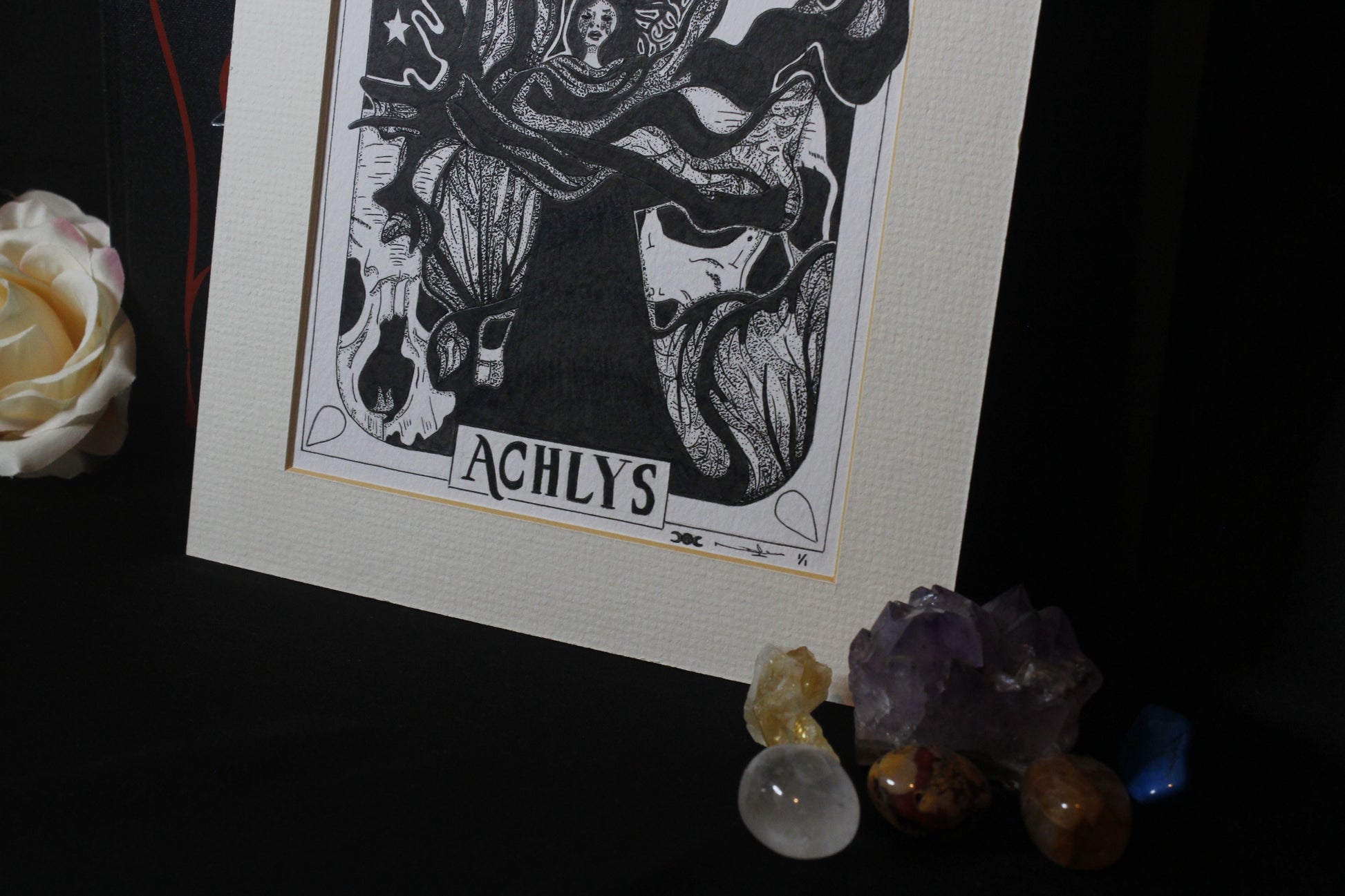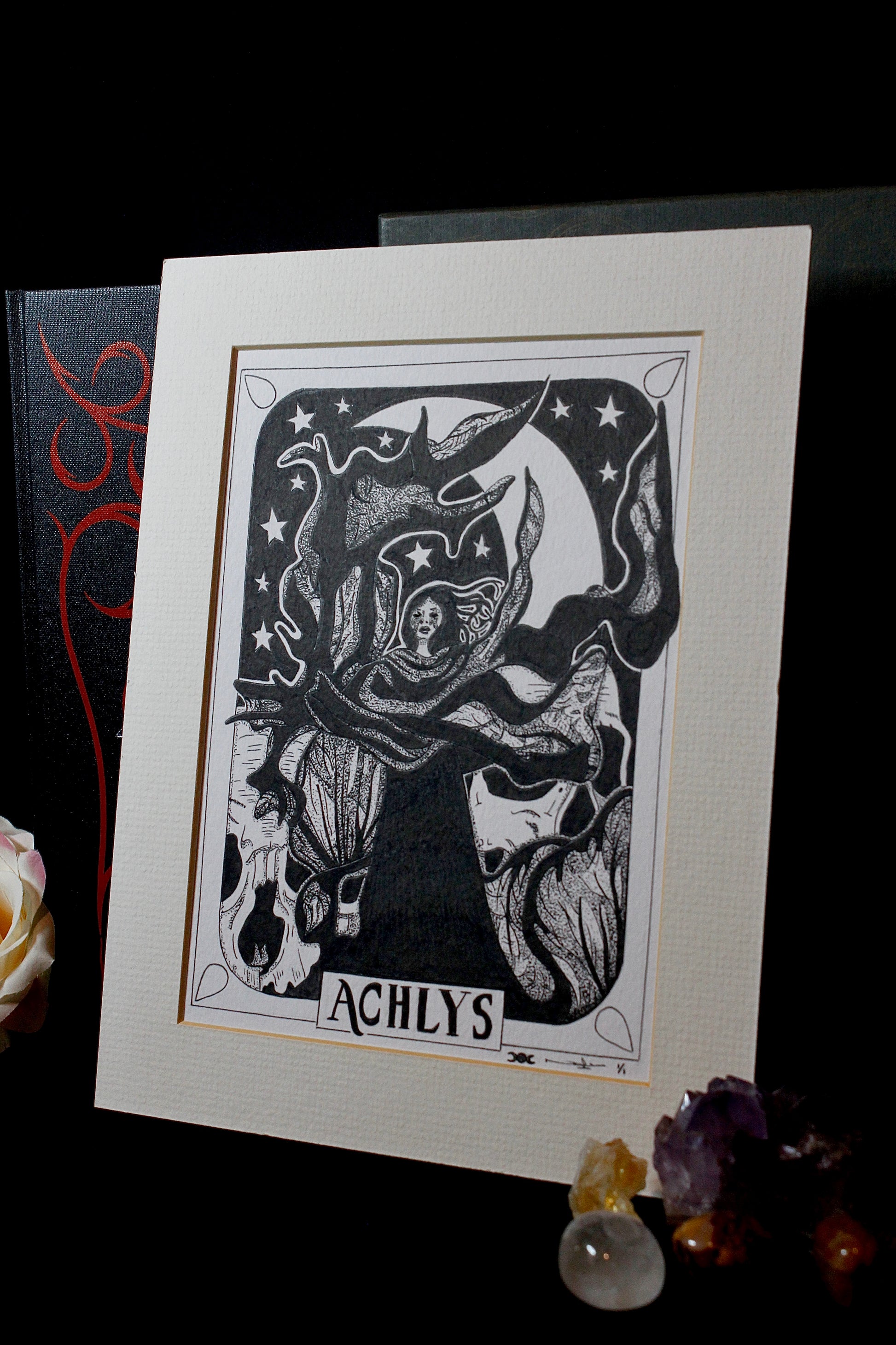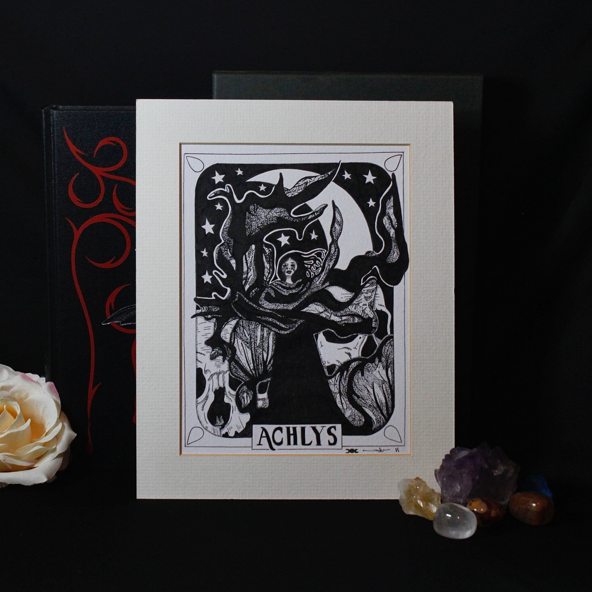 ‘Achlys’ Original pen and ink artwork on A5 250gsm quality mixed media paper with a light cream mount.