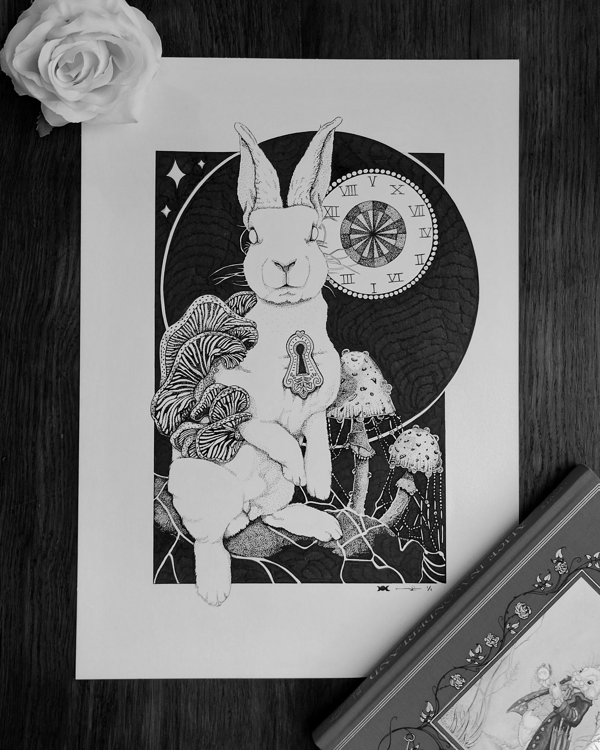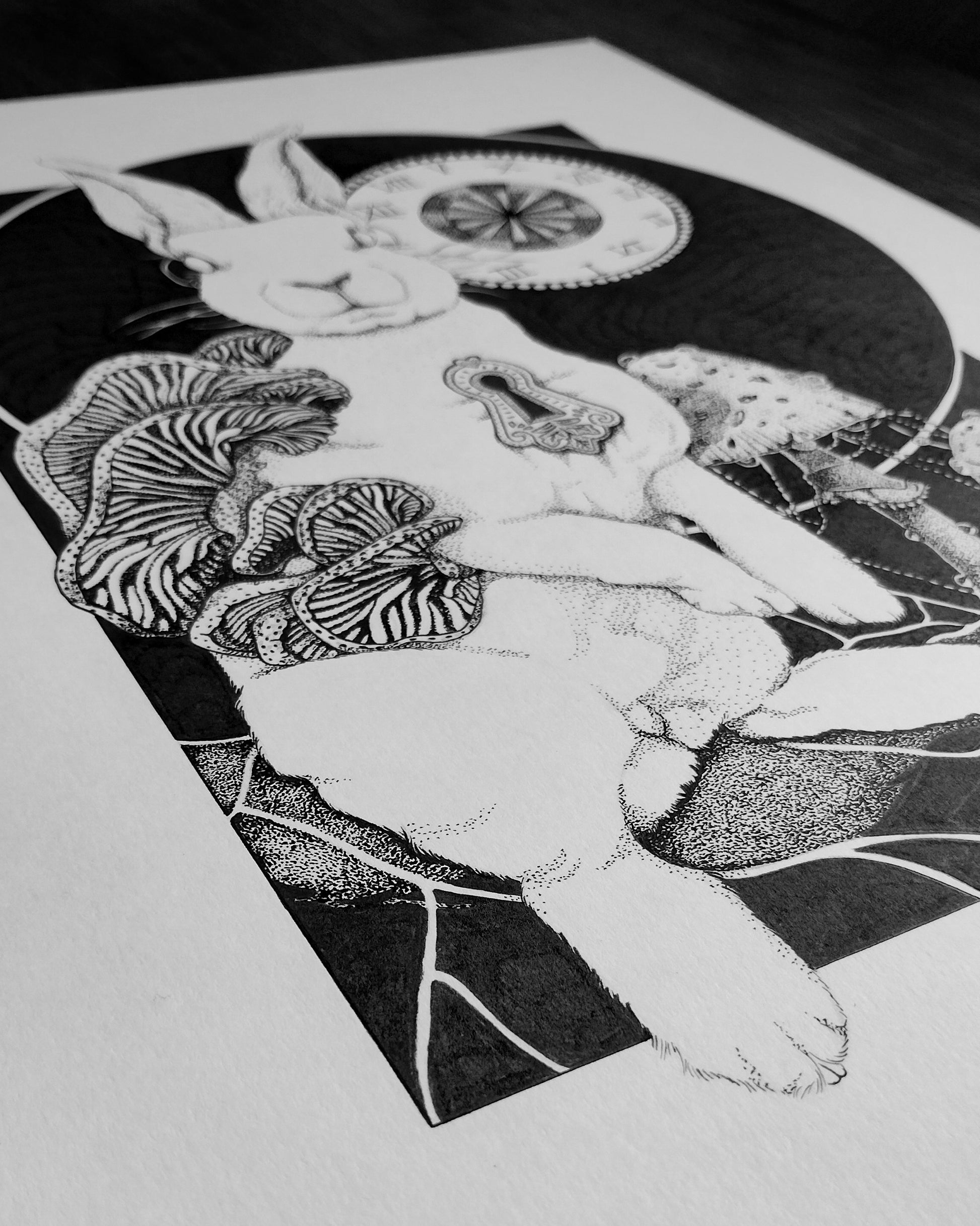 'Down The Rabbit Hole' Original Pen and Ink Artwork on A3 250gsm High Quality Mixed Media Paper.