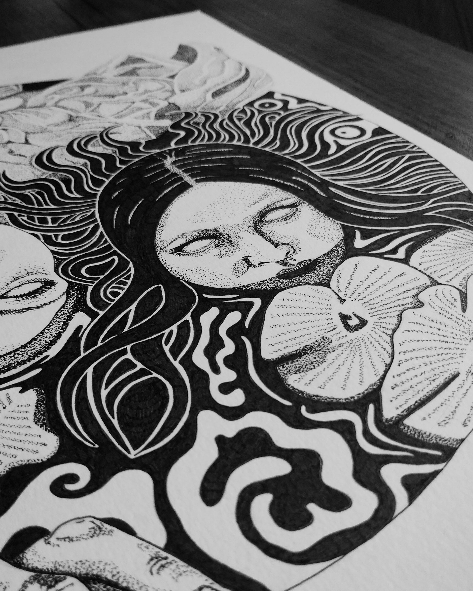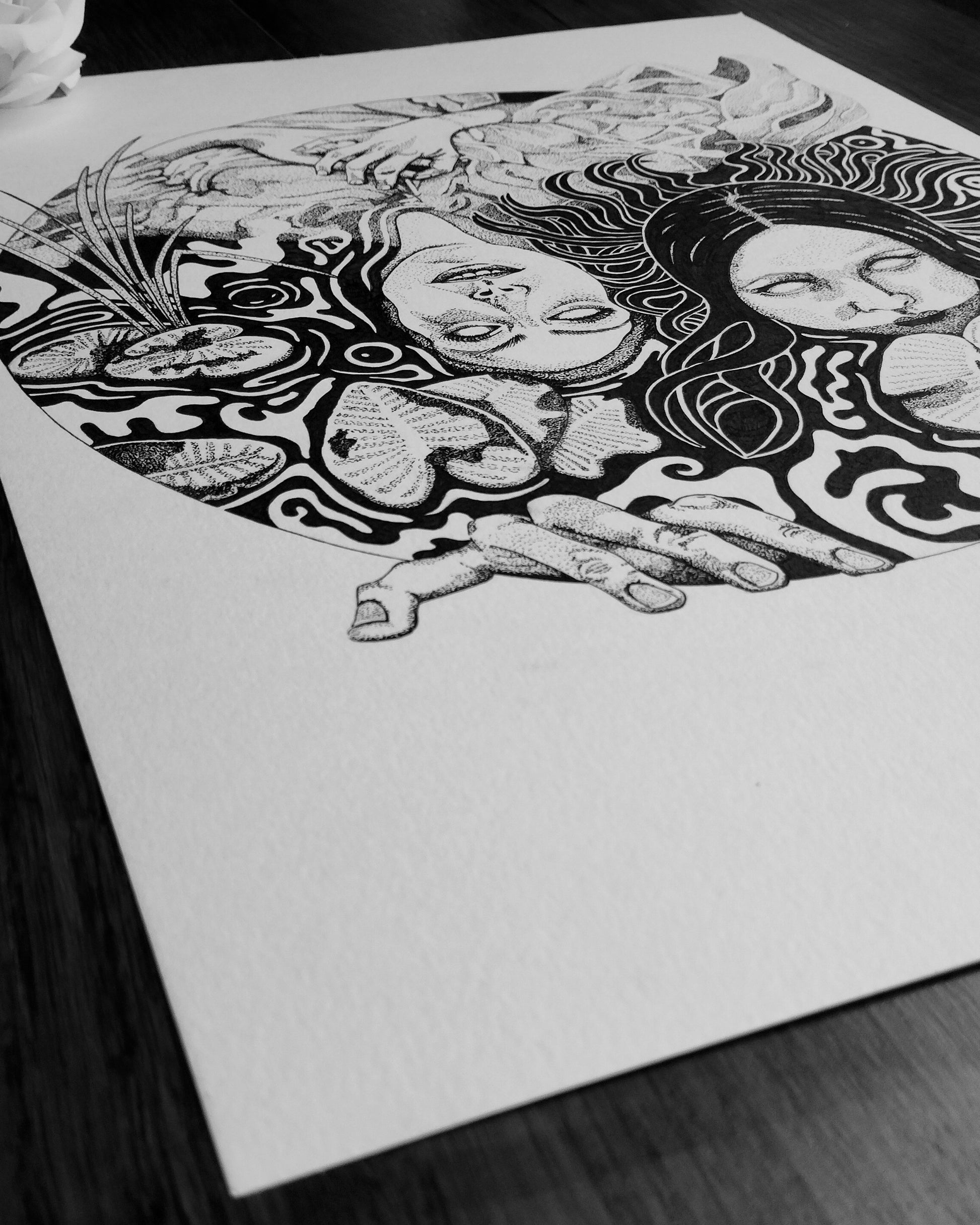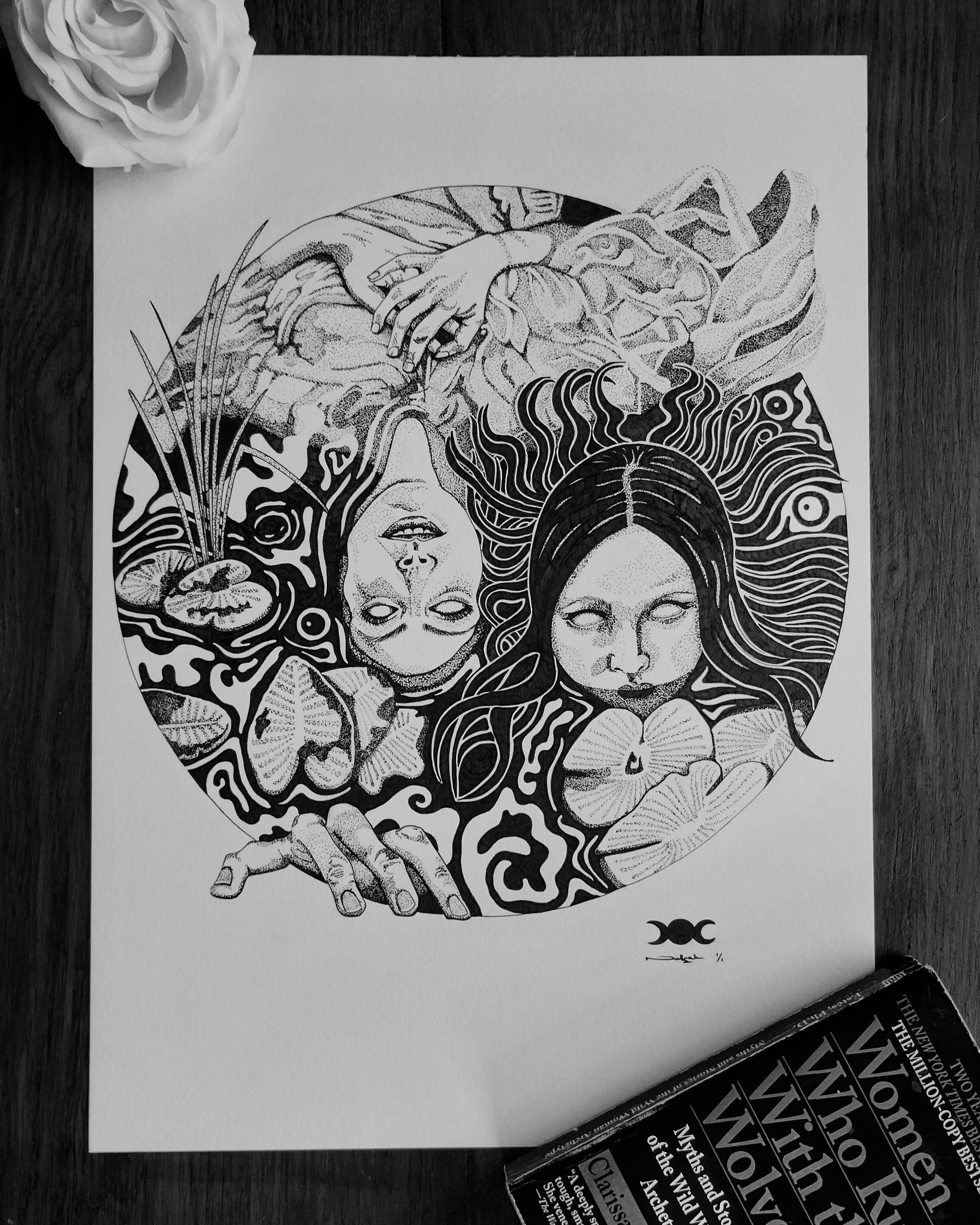 'Ladies of the Lake' Original Pen and Ink Artwork on A3 250gsm High Quality Mixed Media Paper.